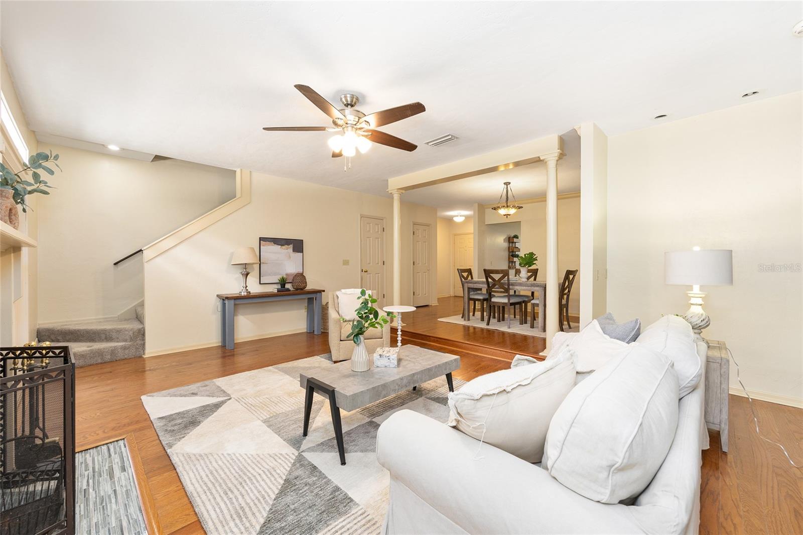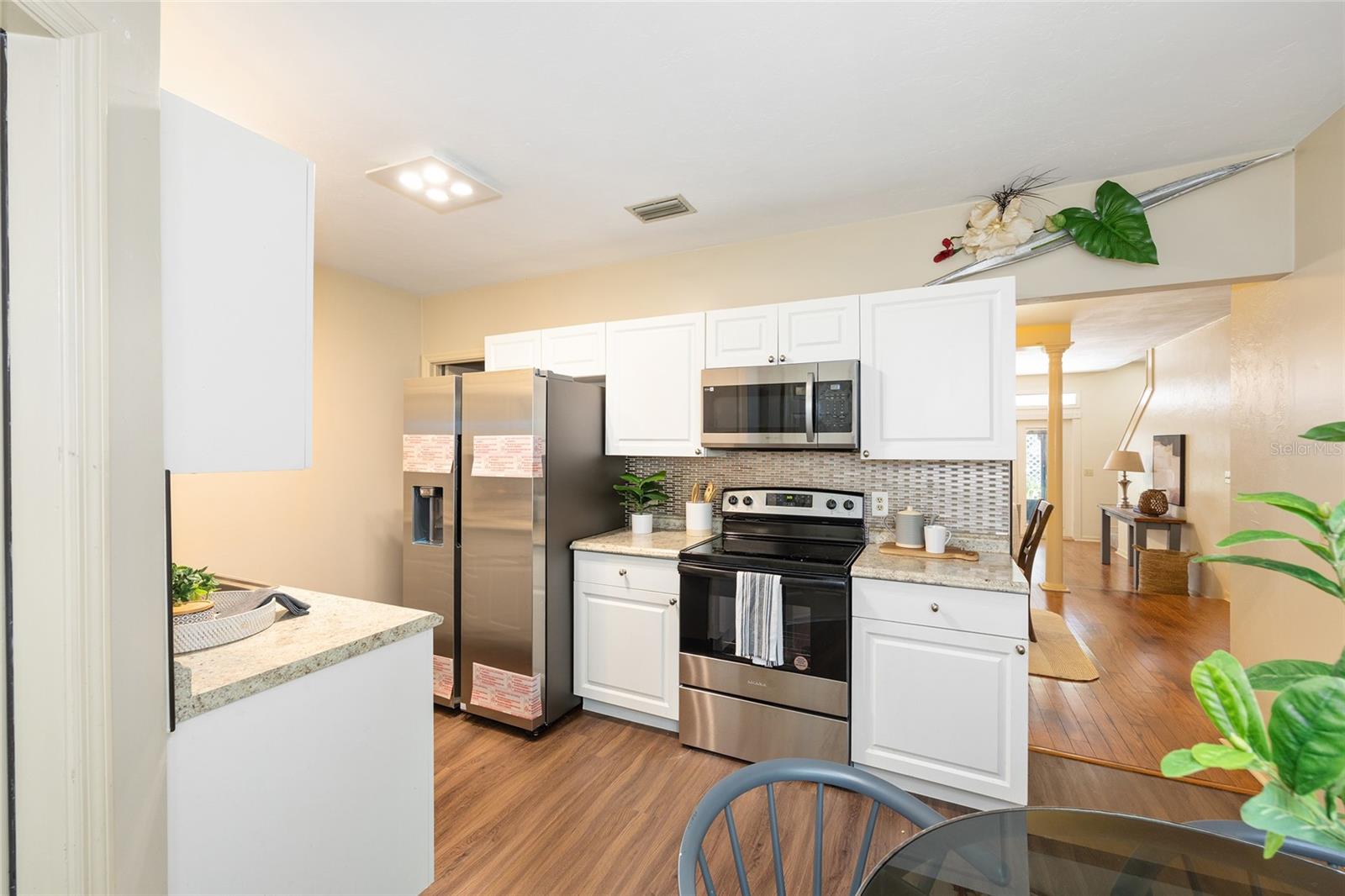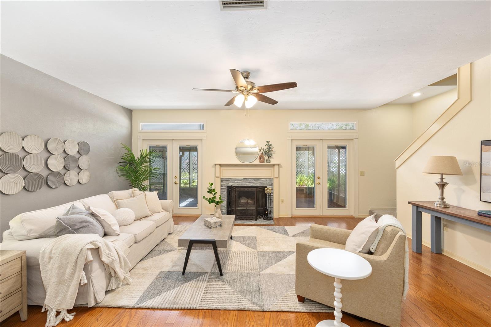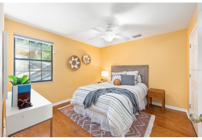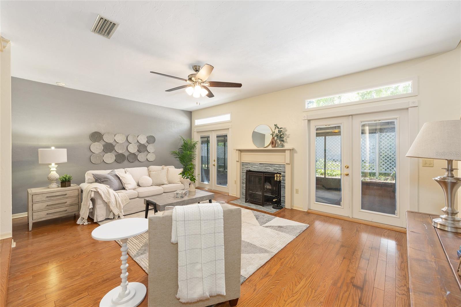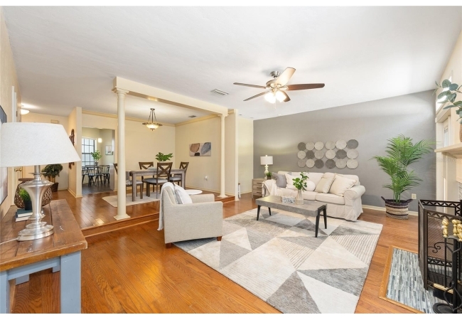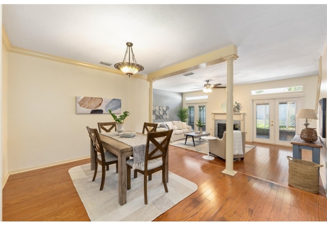A lush corner lot frames this residence with classic curb appeal, a testament to timeless design and ?i?ntentional care. Tall ceilings and beautiful hardwood floors establish a sense of grandeur upon entry, seamlessly blending sophistication with warmth. The open floor plan fosters an effortless flow throughout, inviting exploration from one thoughtfully curated space to the next. An elegant dining room merges gracefully with the expansive living area where a striking fireplace serves as both centerpiece and visual anchor. Dual French doors flank the hearth, providing passage to a charming enclosed sunroom—a haven for year-round enjoyment that celebrates the interplay of indoor and outdoor living. The bijou kitchen, artfully proportioned for style and function, presents a refined composition of timeless white cabinetry, sleek stainless steel appliances, and a chic modern backsplash. All? the kitchen appliances are newly installed, ?offering a pristine, untouched experience? with these brand new fixtures. An adjoining breakfast nook extends an invitation to linger over morning coffee or evening conversations, its intimacy enhancing the kitchen’s allure. Ascending the staircase reveals a primary suite that epitomizes comfort and style, with wide plank flooring lending contemporary flair. A spacious walk-in closet and private ensuite offer both luxury and practicality. The secondary bedroom delivers a serene retreat, while a third bedroom provides versatility as a guest sanctuary or refined home office. Practicality meets refinement with an in-unit laundry room, private garage, and verdant greenspace that completes the offering. Situated in a coveted locale near Archer Road and Newberry Road, this townhome offers effortless access to premier shopping, dining, and everyday conveniences - where classic charm meets modern accessibility.