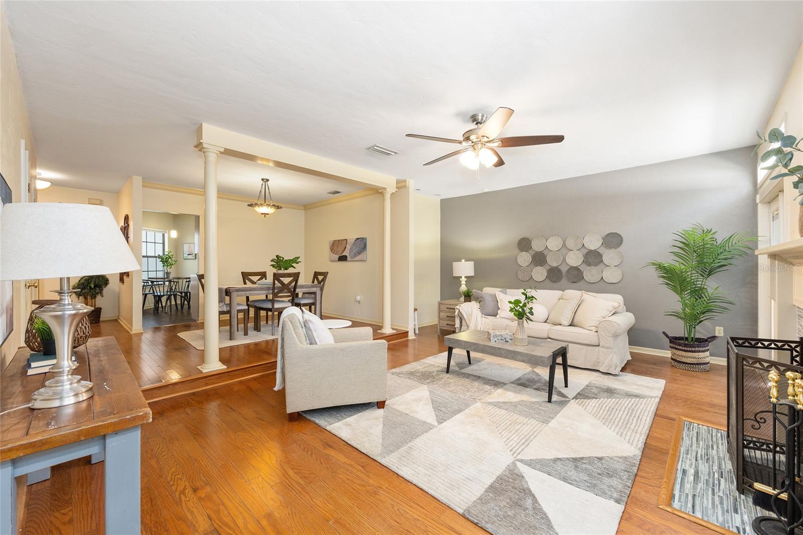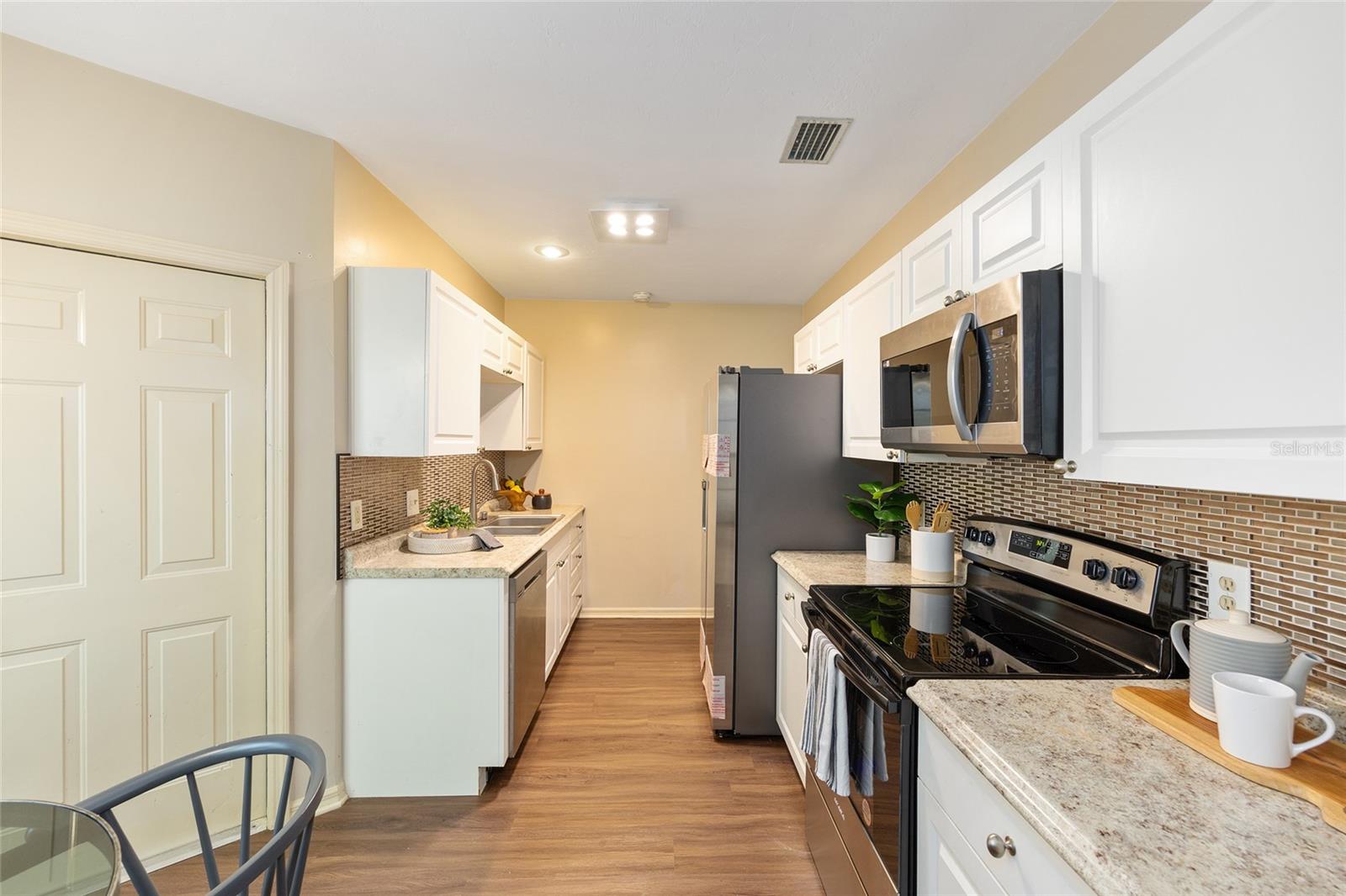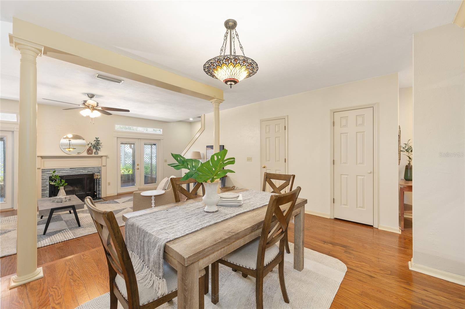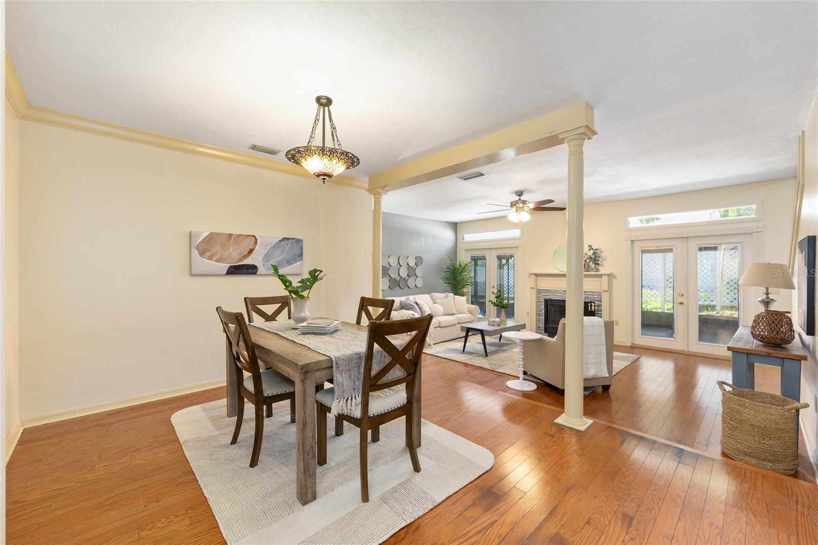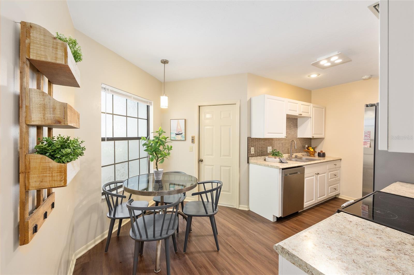 A lush corner lot frames this residence with classic curb appeal, a testament to timeless design and ?i?ntentional care. Tall ceilings and beautiful hardwood floors establish a sense of grandeur upon entry, seamlessly blending sophistication with warmth. The open floor plan fosters an effortless flow throughout, inviting exploration from one thoughtfully curated space to the next. An elegant dining room merges gracefully with the expansive living area where a striking fireplace serves as both centerpiece and visual anchor. Dual French doors flank the hearth, providing passage to a charming enclosed sunroom—a haven for year-round enjoyment that celebrates the interplay of indoor and outdoor living. The bijou kitchen, artfully proportioned for style and function, presents a refined composition of timeless white cabinetry, sleek stainless steel appliances, and a chic modern backsplash. All? the kitchen appliances are newly installed, ?offering a pristine, untouched experience? with these brand new fixtures. An adjoining breakfast nook extends an invitation to linger over morning coffee or evening conversations, its intimacy enhancing the kitchen’s allure. Ascending the staircase reveals a primary suite that epitomizes comfort and style, with wide plank flooring lending contemporary flair. A spacious walk-in closet and private ensuite offer both luxury and practicality. The secondary bedroom delivers a serene retreat, while a third bedroom provides versatility as a guest sanctuary or refined home office. Practicality meets refinement with an in-unit laundry room, private garage, and verdant greenspace that completes the offering. Situated in a coveted locale near Archer Road and Newberry Road, this townhome offers effortless access to premier shopping, dining, and everyday conveniences - where classic charm meets modern accessibility.