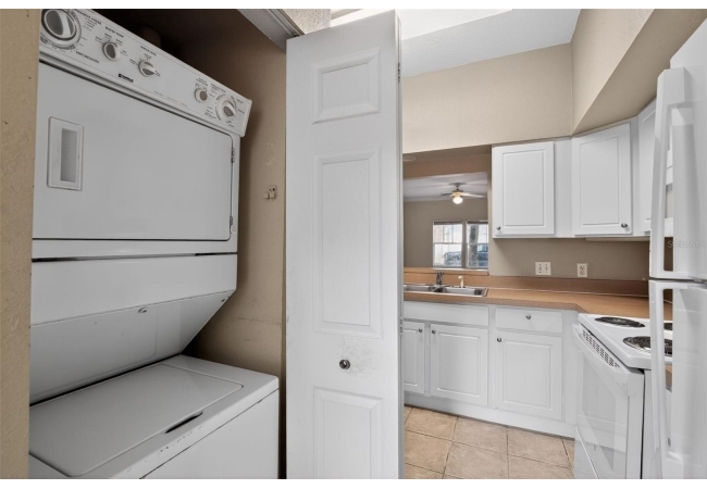 The kitchen comes fully equipped with all appliances, including a microwave, making meal prep easy and efficient. A convenient laundry closet with a stacked washer and dryer adds to the home’s turnkey appeal—everything you need, right where you need it. This residence is ideal for those who value low-maintenance living without sacrificing quality or location.