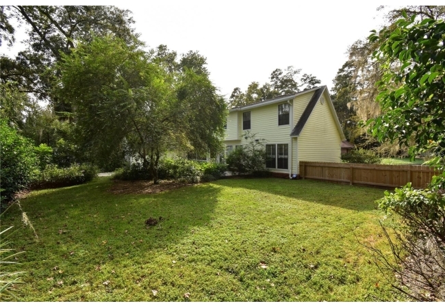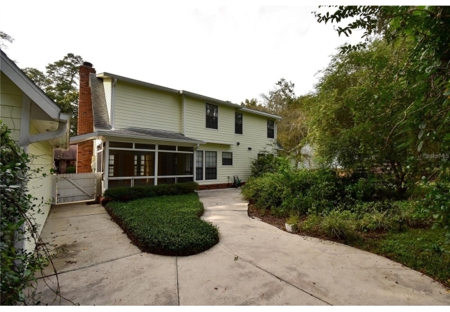 Welcome to this picture-perfect storybook home, New Roof, beautifully constructed by Tom Spain and conveniently located just minutes from UF, Oaks Mall, I-75, and a variety of restaurants and shopping options. As you enter the home, you are greeted by a welcoming foyer that opens to a spacious formal living room, which seamlessly flows into a large formal dining room. Both rooms are adorned with luxury vinyl plank (LVP) flooring and feature floor-to-ceiling windows offering picturesque views of the backyard. The kitchen is a chef's delight, boasting stainless steel appliances, Spanish tile flooring, ample counter space, and numerous cabinets for storage. The adjacent dining area is bright and airy, with windows and a French door leading to the screened porch. This home is perfect for entertaining, with a very large family room featuring LVP floors, a cozy fireplace, and a wall of French doors that open to the serene screened porch. Upstairs, you will find two generously sized guest rooms, a hall bath, and an oversized primary suite with a spacious bath. The lovely backyard offers a spacious courtyard area, a sprawling yard ideal for various activities, and a convenient storage shed tucked away in the corner. New roof is being istalled.