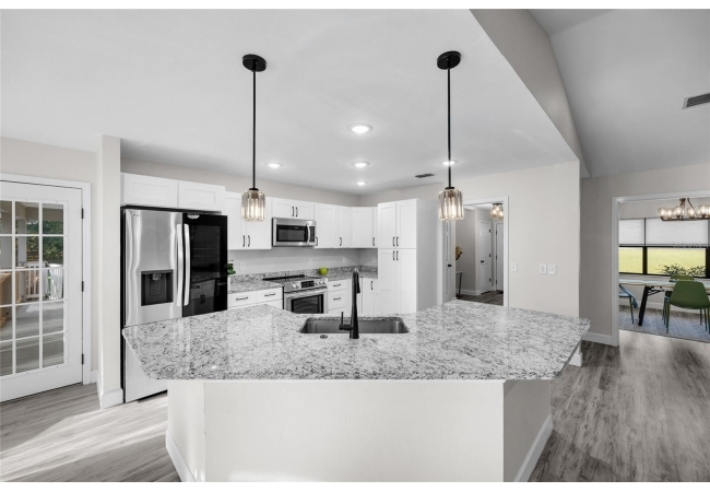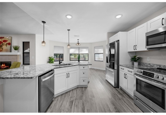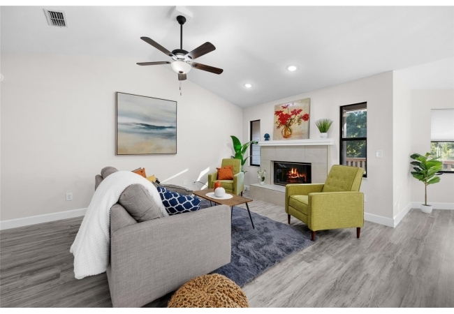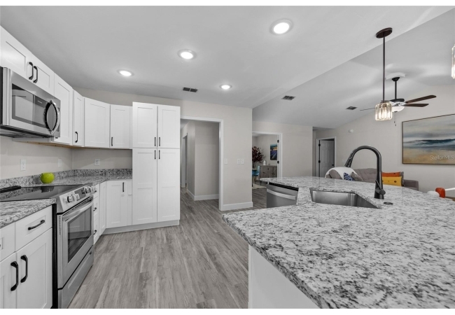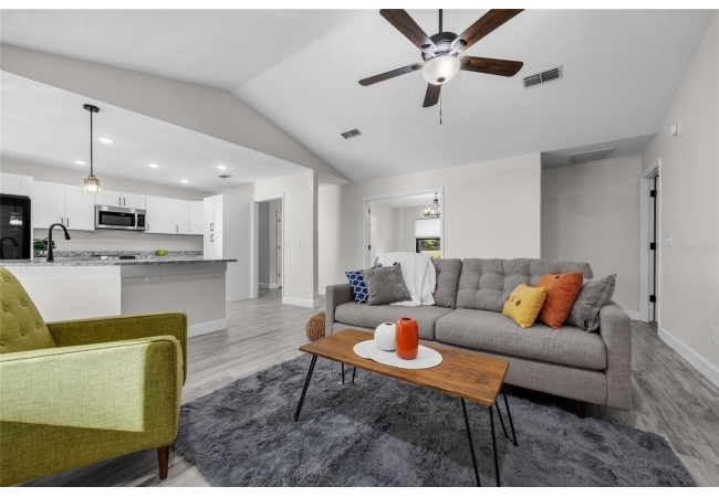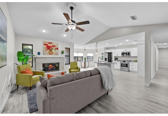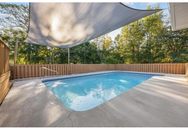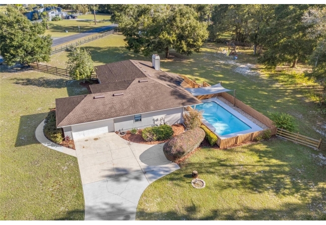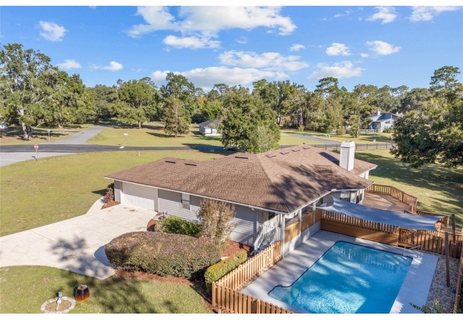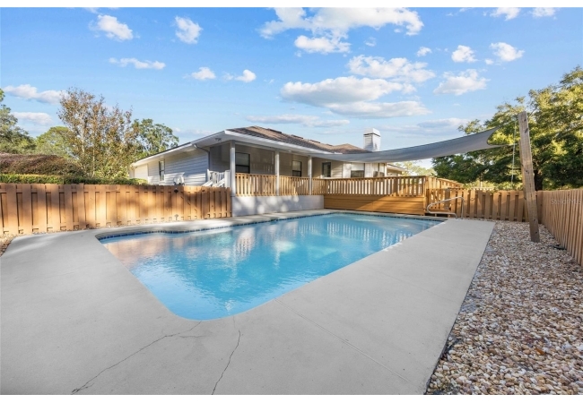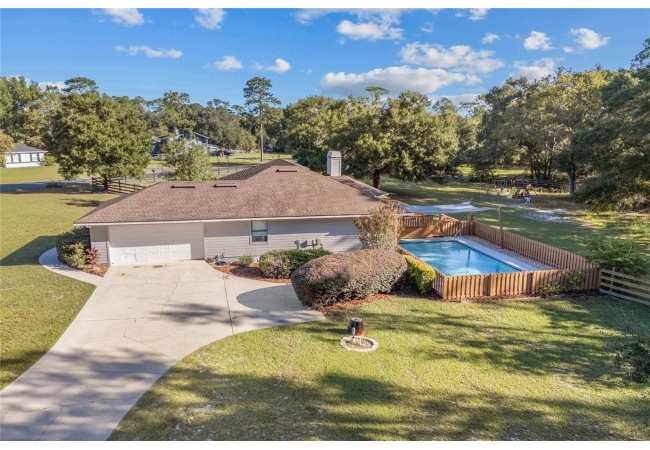 Stunning 4BR/2BA Pool Home on 1.81 Acres in The Meadows of Kanapaha! This beautifully upgraded home combines modern comfort with quiet country charm. Featuring a durable Hardie board plank exterior and tons of natural light, it offers both style and functionality. The sparkling pool includes a new PebbleTec surface, pump, filter, and plumbing, an overhead shade cover, and a new two-level stained wooden deck—perfect for relaxing or entertaining. The pool is also fully fenced for child safety. The deck offers enclosed storage below and is surrounded by colorful Lantanas that attract butterflies. Inside, enjoy fresh interior paint (including ceilings), new carpet in the bedrooms, luxury vinyl flooring throughout most of the home, and an oversized indoor laundry room with added cabinetry. The primary bedroom includes an additional flex space perfect for an office. The kitchen features a new fridge and dishwasher. Major updates include a 2023 4-ton Trane AC, new roof (2022), new well pump, new water softener, and a new garage opener system with a generator plug and transfer switch. The fenced backyard includes a large gate for vehicle access. Ideally located just 5 minutes to I-75, Butler Plaza, or Haile Village Center’s shops, farmer’s markets, and festivals—and only 15 minutes to UF, Shands, the VA, North Florida Hospital, and downtown Gainesville!