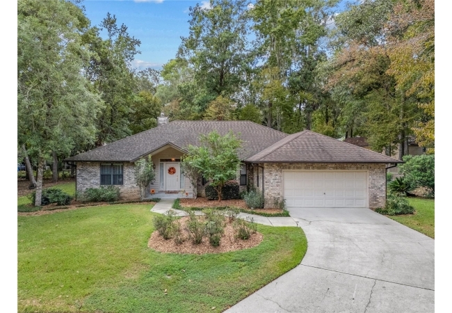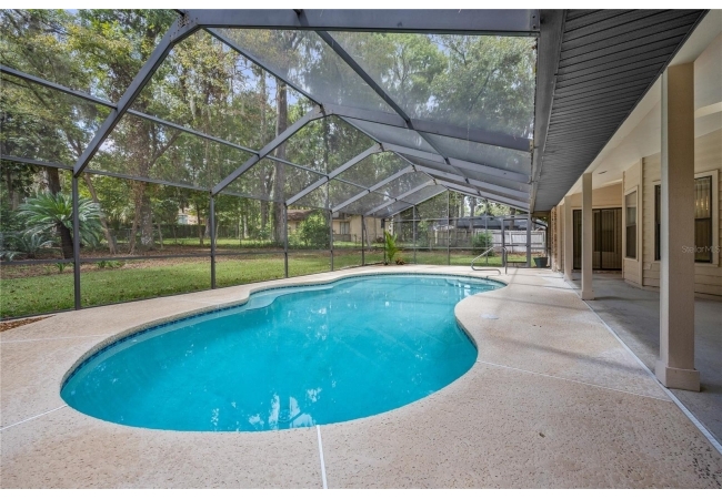 One or more photo(s) has been virtually staged. Welcome to 9329 NW 14th Place, a charming 3-bedroom, 3-bathroom pool home set on just under half an acre in the peaceful, non-HOA community of Oak Crest. Tucked away on a quiet cul-de-sac, this one-owner home has been lovingly maintained and is brimming with potential for easy cosmetic updates that will create instant equity for its next owners. The inviting curb appeal is framed by mature trees and a wide, pie-shaped lot that offers exceptional space and privacy.