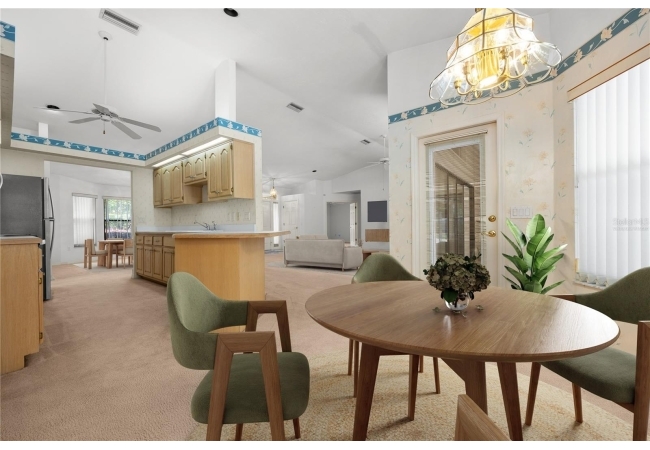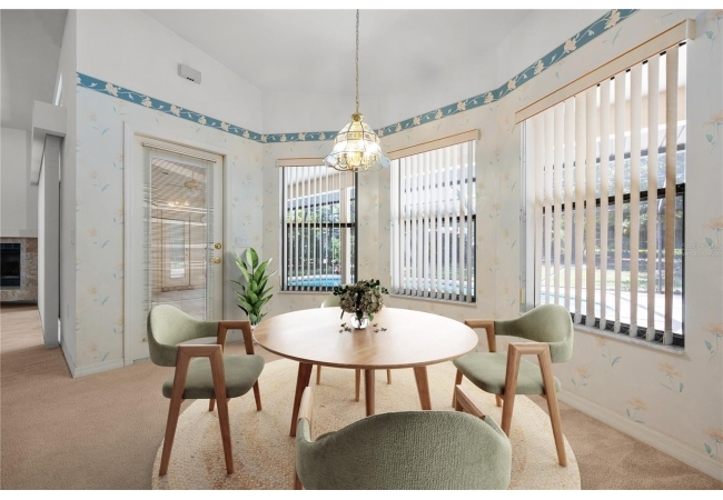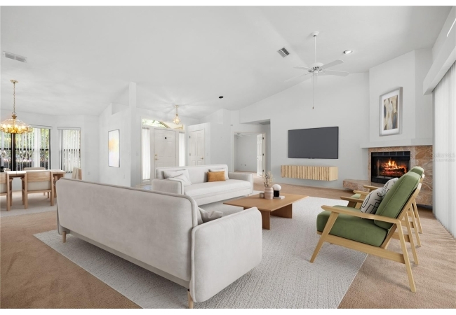 Step inside to discover a thoughtfully designed split-floor plan anchored by a massive living room with soaring vaulted ceilings and a cozy wood-burning fireplace. The traditional dining room and a bright eat-in nook off the kitchen provide flexible spaces for gathering and entertaining. The kitchen is equipped with recently updated stainless steel appliances, and the home’s HVAC system has also been replaced for added peace of mind.