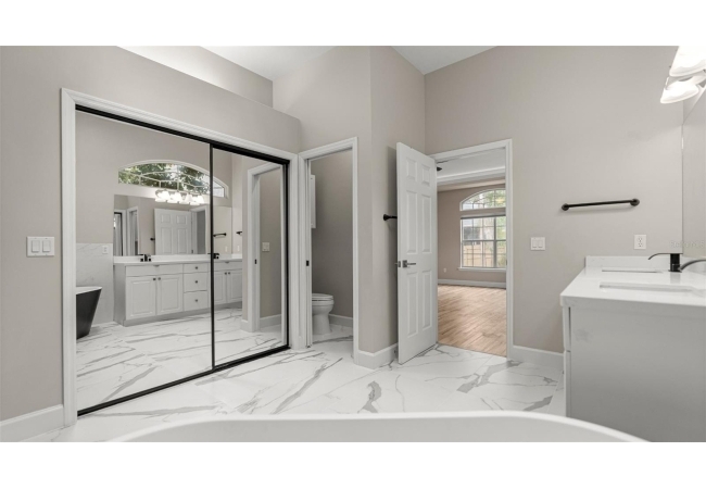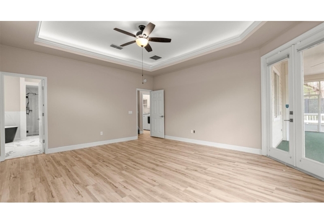 The primary suite offers a peaceful retreat with French doors to the lanai, a walk-in closet, and a spa-style bath featuring a freestanding tub, dual vanities, and a beautifully tiled shower. Two guest bedrooms and an updated guest bath sit near the foyer, while the upstairs fourth bedroom/flex space provides ideal versatility for an office or guest suite. Additional highlights include a mudroom with sink and cabinetry, 2024 washer and dryer, under stairs storage, and a two-car garage. Located near parks, trails, Haile Village, and Hawkstone Country Club, with access to top-rated schools, this is refined living, a move-in-ready home in one of Gainesville’s most sought-after communities. Schedule a tour today!