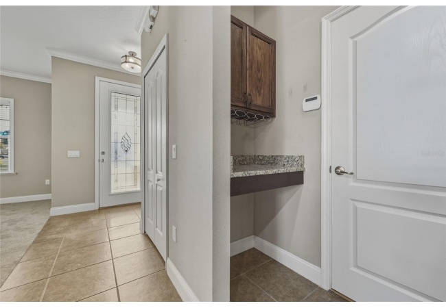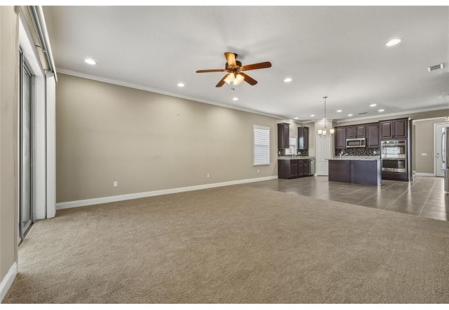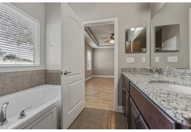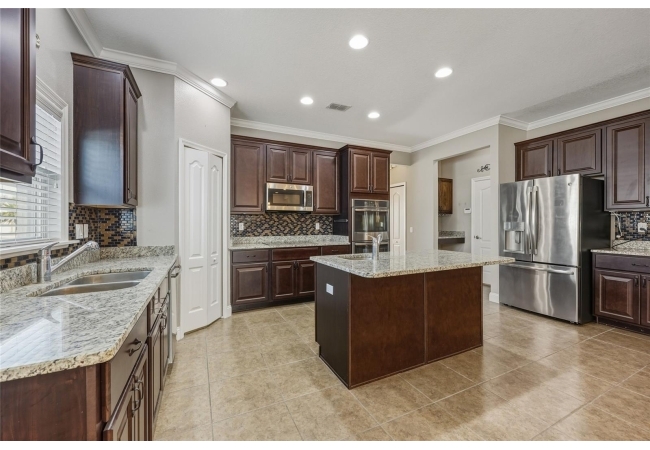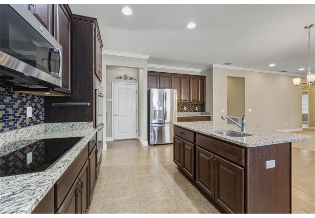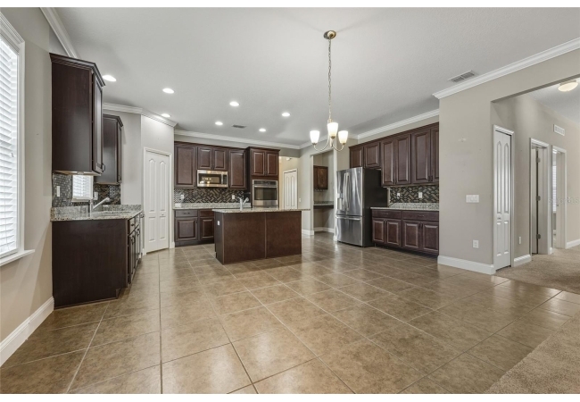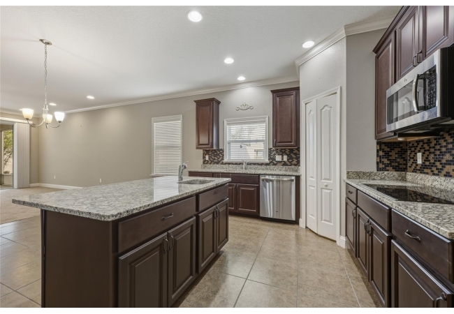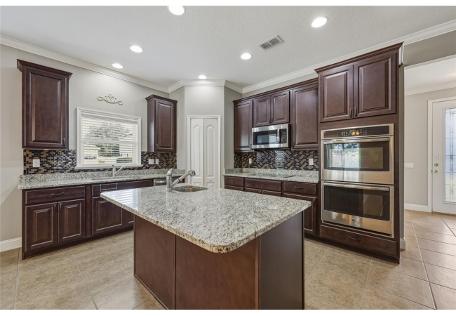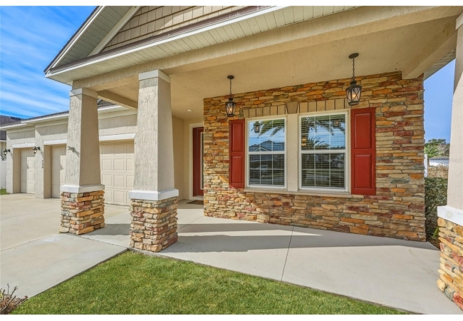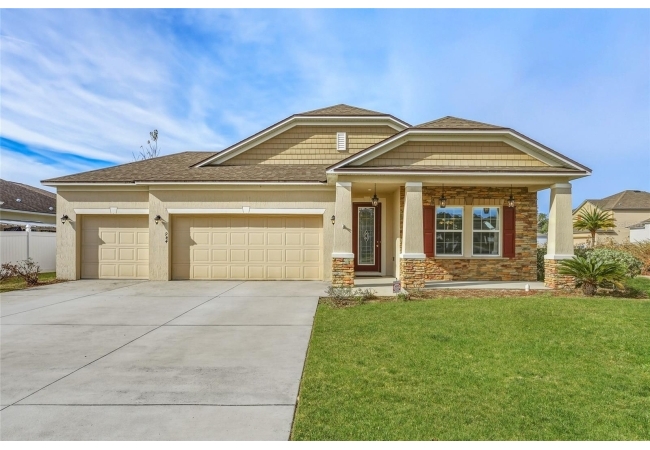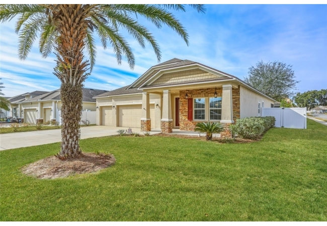 One or more photo(s) has been virtually staged. Beautiful 3-bedroom, 2-bath home situated on a desirable corner lot in Newberry Corners! A welcoming front porch invites you inside, where the formal dining room sits just off the entry. The spacious kitchen is well-appointed with a large island, granite countertops, breakfast bar, two wall ovens, built-in microwave, dual sinks, pantry, and a convenient built-in desk. The primary suite features vinyl flooring, a walk-in closet, and tray ceilings. The en-suite bath offers dual vanities, built-in linen storage, a walk-in shower, and a relaxing garden tub. Two additional bedrooms are separated by a versatile flex space—perfect for a playroom, office, or media area. A three-car garage provides ample storage and has plenty of room for a workshop. The screened patio overlooks the fully fenced backyard, ideal for outdoor enjoyment.