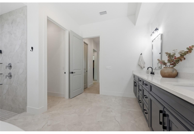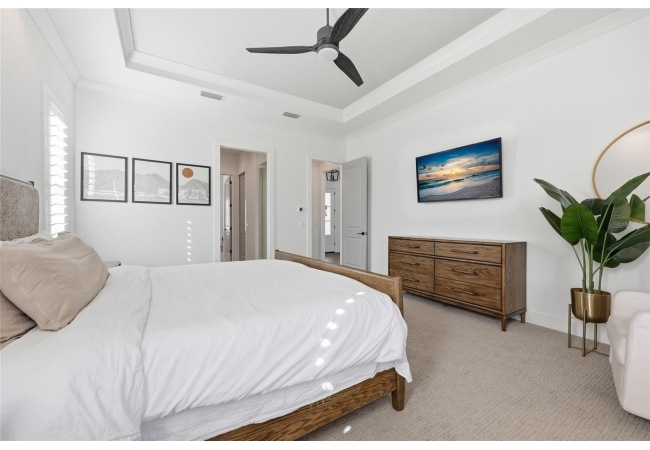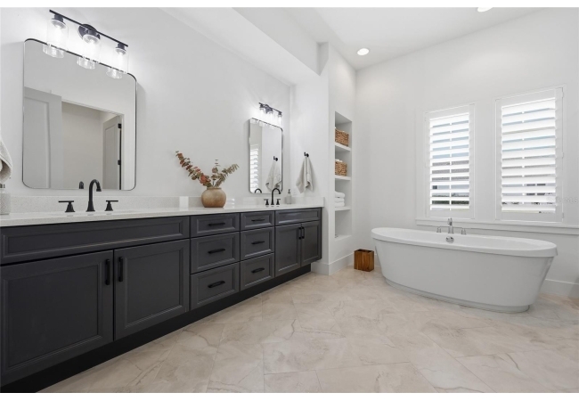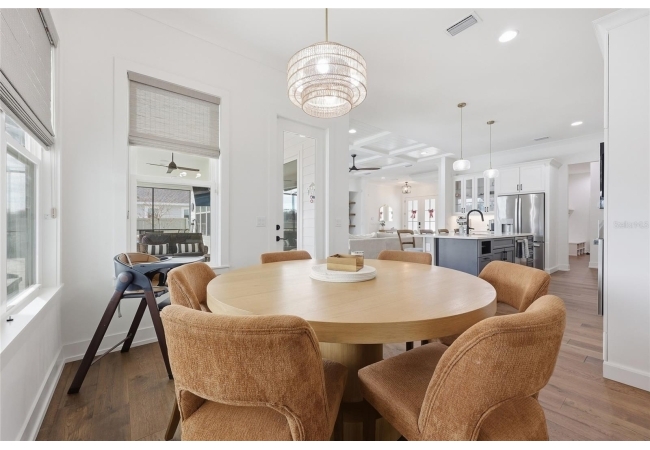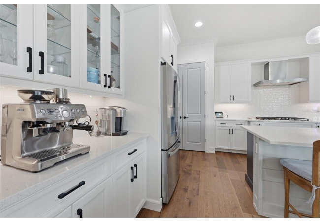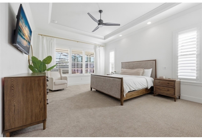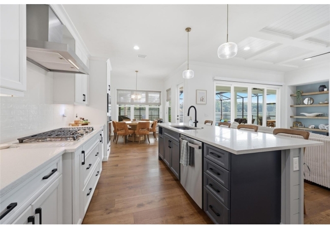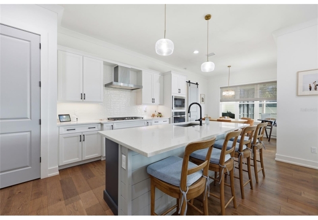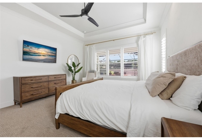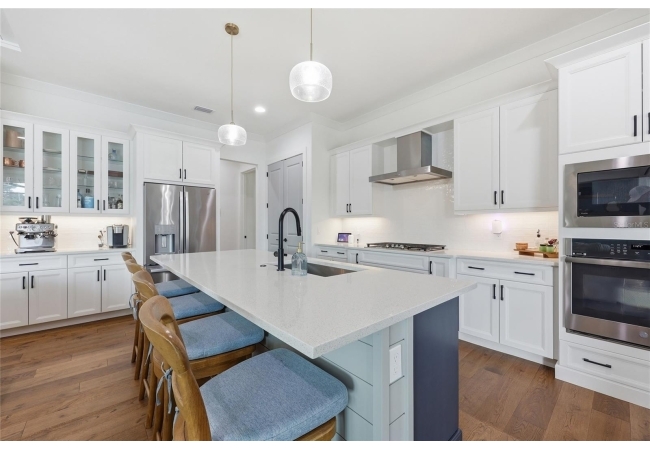 The chef’s kitchen is truly the heart of the home, featuring top-of-the-line appliances, abundant counter space, and seamless flow into the main living and dining areas—perfect for entertaining on any scale. Elegant shutters and designer window treatments throughout add both beauty and privacy.