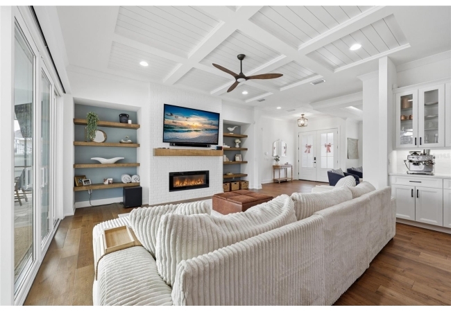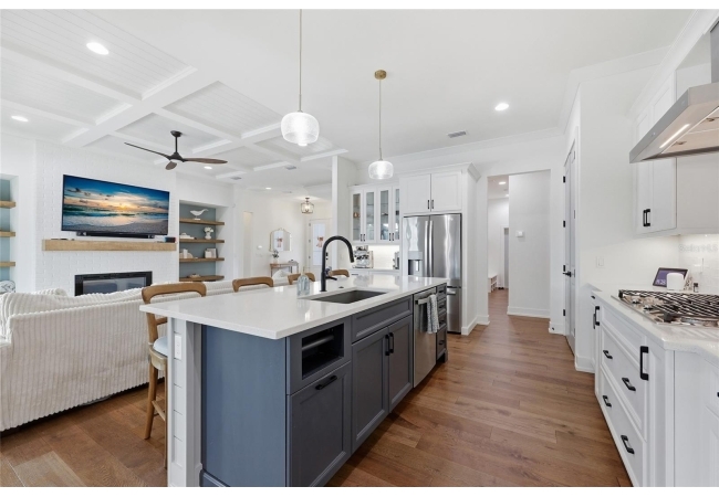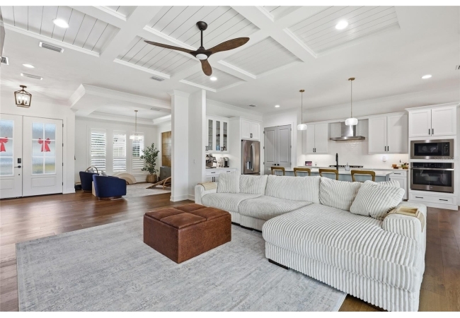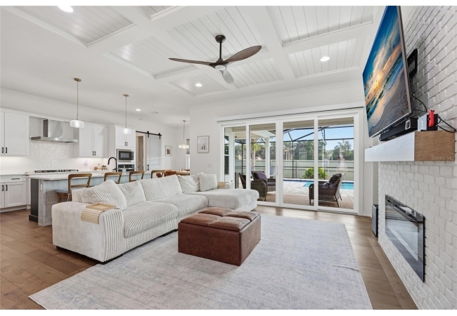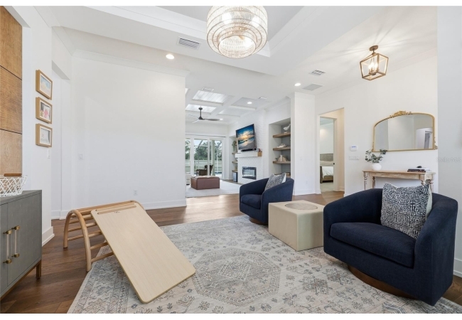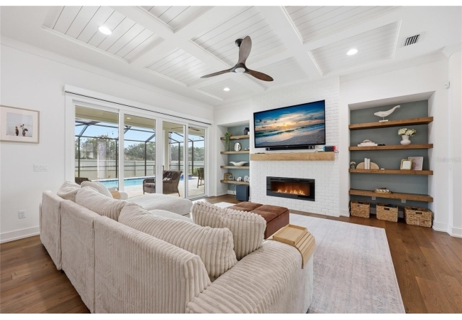 Experience refined living in this exceptional 4-bedroom, 3-bath luxury pool home, complete with a study custom built by Warring Homes and located in the desirable Glorias Way neighborhood. Thoughtfully designed with an open-concept floor plan, this residence showcases gorgeous wood flooring, exquisite ceiling details, and a welcoming living room anchored by a stunning fireplace and custom built-in shelving.