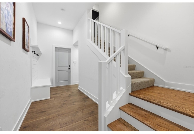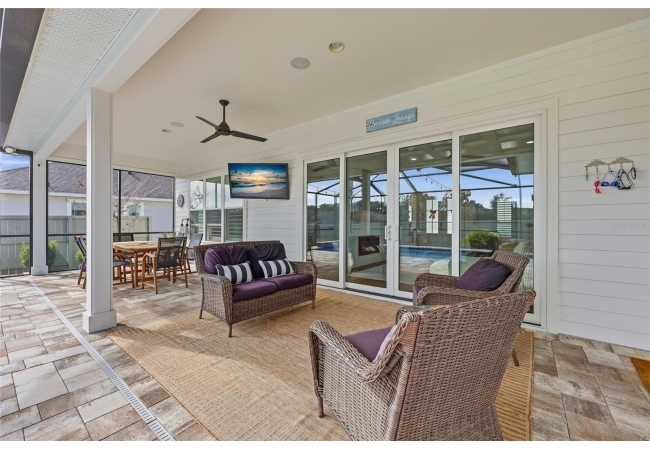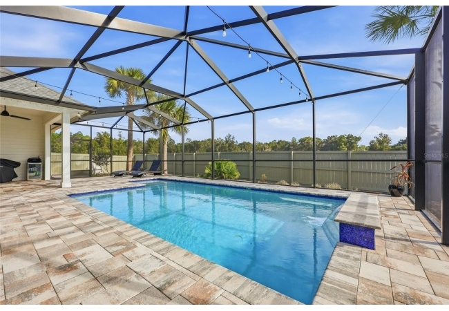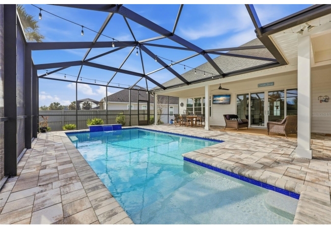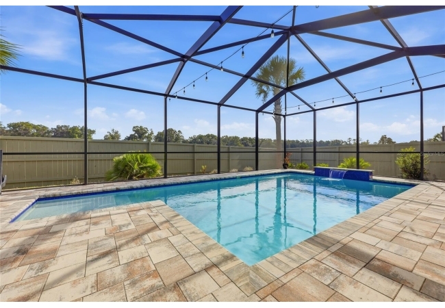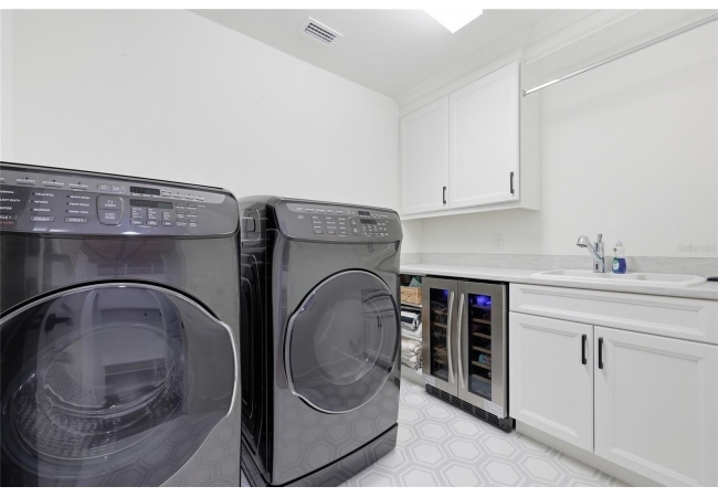 Everyday functionality meets luxury with a convenient drop zone near a spacious and well-appointed laundry room. Step outside to an incredible outdoor entertaining space featuring a gorgeous salt water pool with a fountain feature—ideal for hosting gatherings or enjoying serene evenings at home.