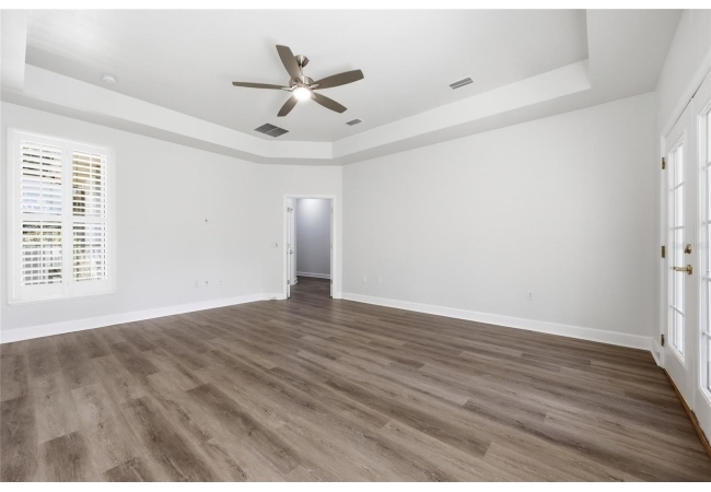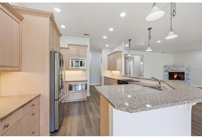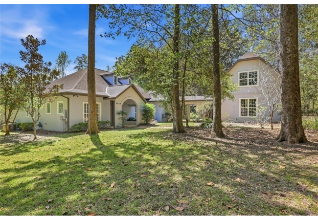 Privacy, water views, and room to enjoy the outdoors define this beautifully updated single-story estate located at the end of a quiet cul-de-sac in the highly desirable community of The Hammock in Northwest Gainesville. Offering 3,013 square feet of living space on 2.27 acres just off scenic Millhopper Road, the property combines peaceful surroundings with convenient access to the University of Florida and UF Health Shands Hospital, approximately 23 minutes away. Mature trees frame the home, which is positioned to capture tranquil views of a private lake and visiting wildlife. Inside, fresh interior paint, updated lighting, and new LVP and tile flooring create a clean, modern feel throughout. The practical split floor plan includes three bedrooms plus a dedicated home office, with two bedrooms able to close off behind a pocket door to create a private wing. The main living area features a gas fireplace and large doors that fully collapse open, seamlessly connecting the living room to an expansive screened deck overlooking the water. The kitchen offers excellent storage with a large walk-in pantry, while the oversized laundry room with sink adds everyday convenience. The primary suite includes two walk-in closets and peaceful views of the surrounding property. Additional highlights include a three-car garage with stairs leading to unfinished storage above, a covered breezeway connecting the garage to the home, and a spacious screened deck designed to enjoy the natural setting. Located near Devil’s Millhopper Geological State Park and San Felasco Preserve State Park, this property offers a rare opportunity to own acreage, privacy, and lakefront scenery in one of Gainesville’s most scenic areas.