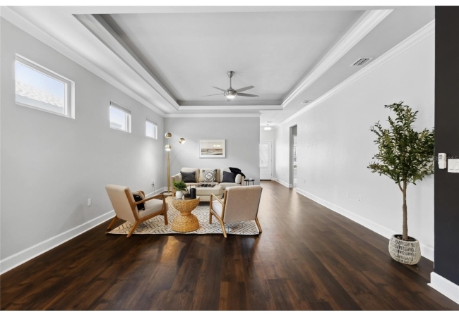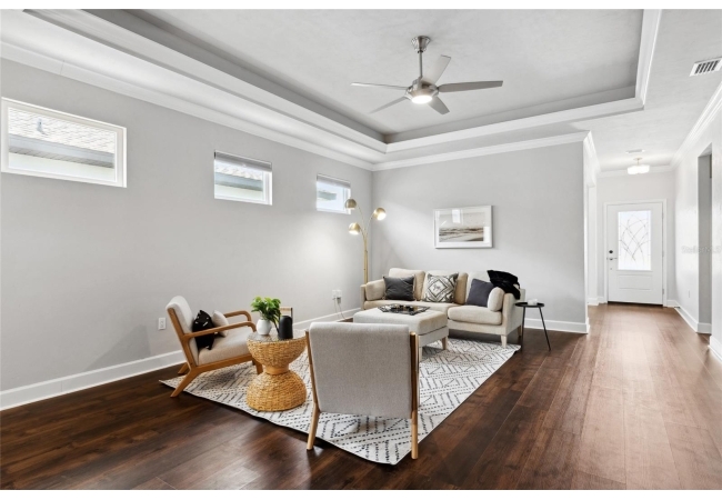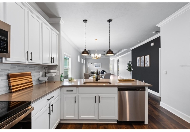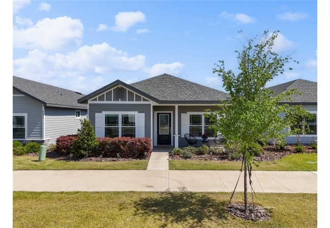 Welcome to your dream home in the sought after community of Lugano! The thoughtfully designed Messina model offers 1,710 square feet of luxury living space. Featuring three bedrooms, two bathrooms, and a flex room, offering versatility to accommodate your evolving needs. The open concept layout seamlessly blends the living room, dining area, and kitchen, making it perfect for entertaining guests or enjoying quality time with loved ones. The kitchen boasts quartz countertops, an elegant backsplash, under-cabinet lighting, and stainless steel appliances, while the outdoor lanai extends your living space for entertaining or relaxation. Front-yard landscaping maintenance included and electric services provided by Clay Electric. Enjoy community amenities such as the clubhouse, resort-style pool, splash pad, fitness center, tennis courts, basketball courts, dog park, and more, all while being conveniently located near Celebration Pointe, Haile Village, UF Health Shands, the University of Florida, and Santa Fe College. Don't miss your chance to make this extraordinary property your new home. Schedule a showing today and start living the life you've always dreamed of!