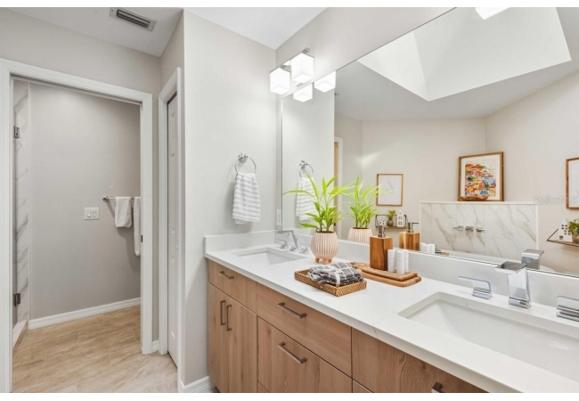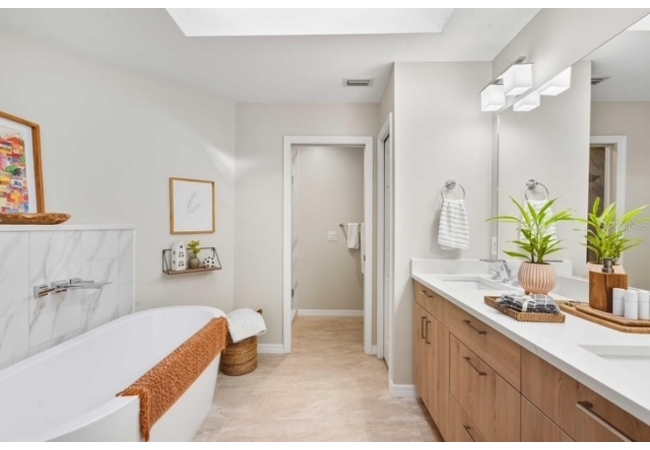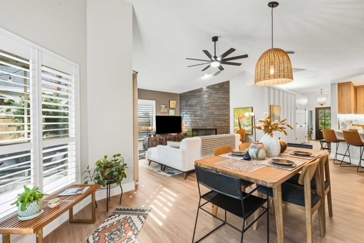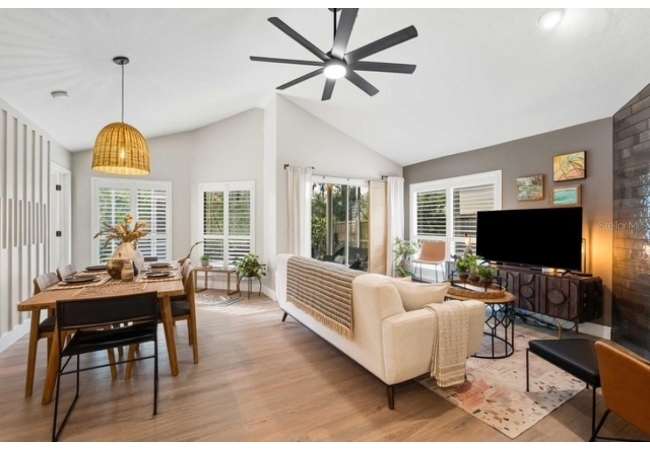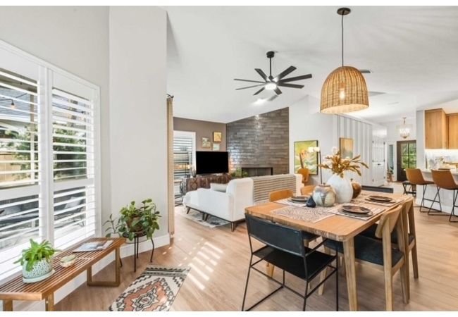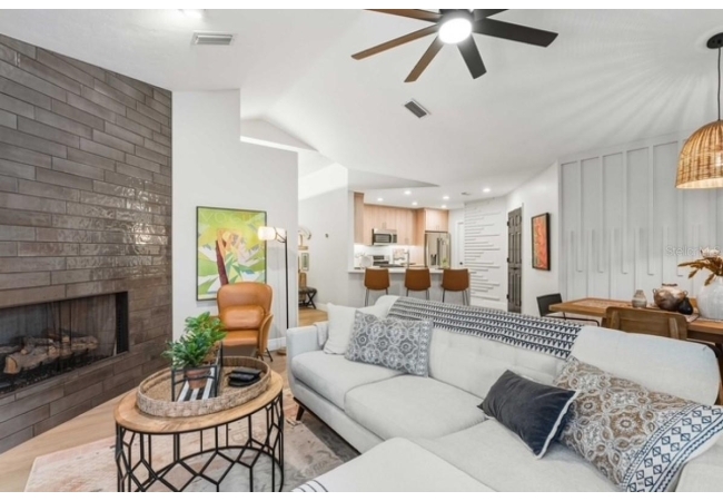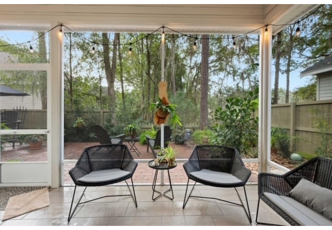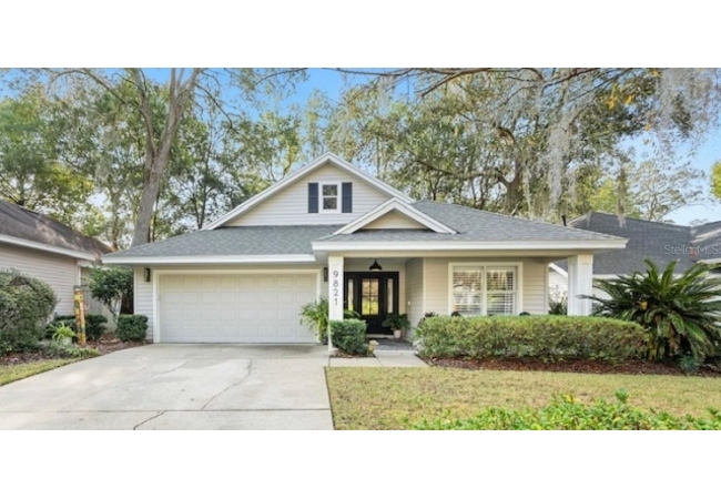 Haile Jewel... quality renovation with premium finishes. 3/2 beautifully renovated top to bottom, turn key stunning home. Jeffrey Wilde built home in highly desirable Ashleigh Circle. Nestled in a quiet cul-de-sac with gorgeous wooded views behind the home. Open, airy floor plan with oversized windows to let nature in. New flooring, plantation shutters, brick paver patio, paint, lighting, etc. kitchen and baths newly remodeled with custom white oak cabinets and white quartz. See photo for list of extensive renovations in 2024 and 2025. Back yard was just fenced, NEST thermostat. Mid Century Modern fireplace is stunning. This home feels warm and inviting yet mid century modern vibe. Low HOA includes lawn maintenance in front and lawn spray. Come live the Haile life style with walking and bike trails, Saturday morning farmer's market and private country club if you love pickleball, tennis, gym and golf! Great location and community.
