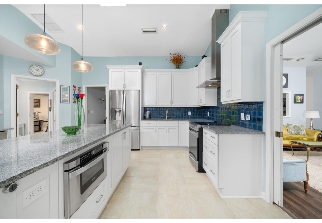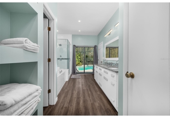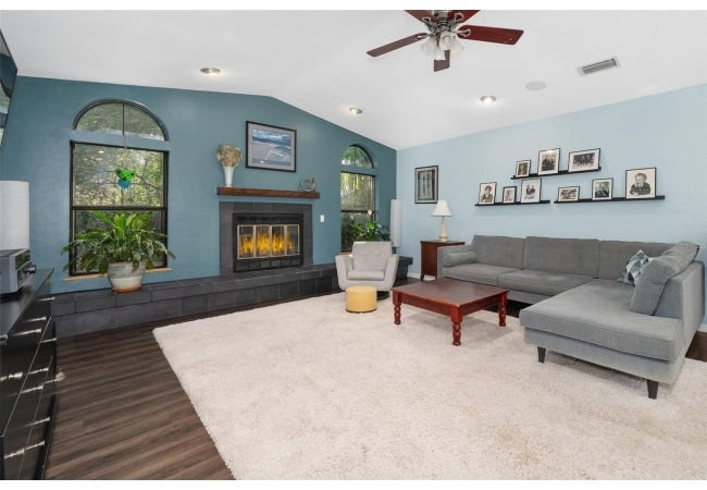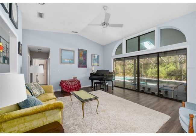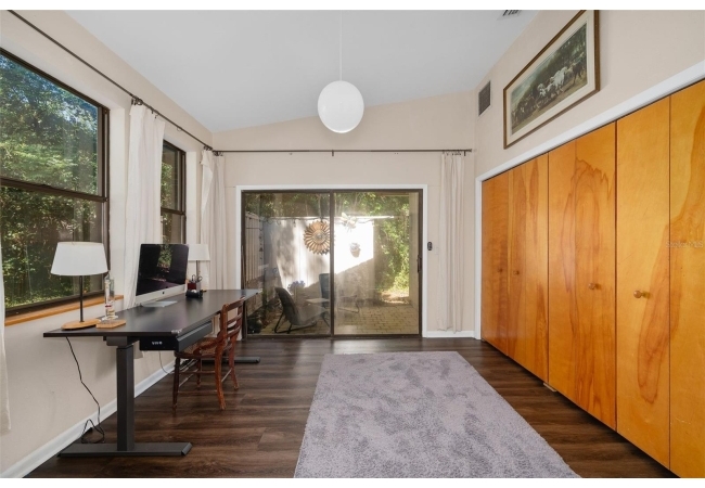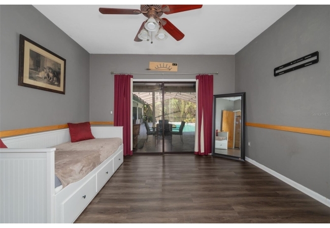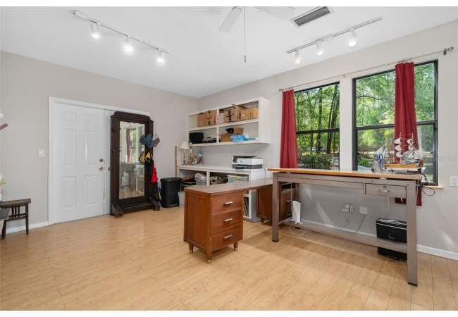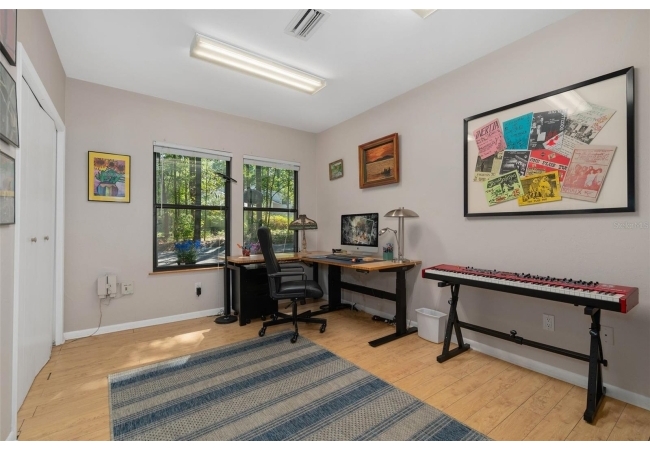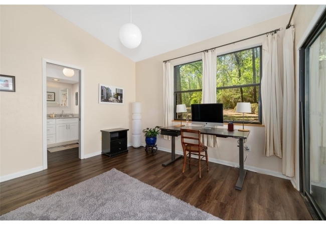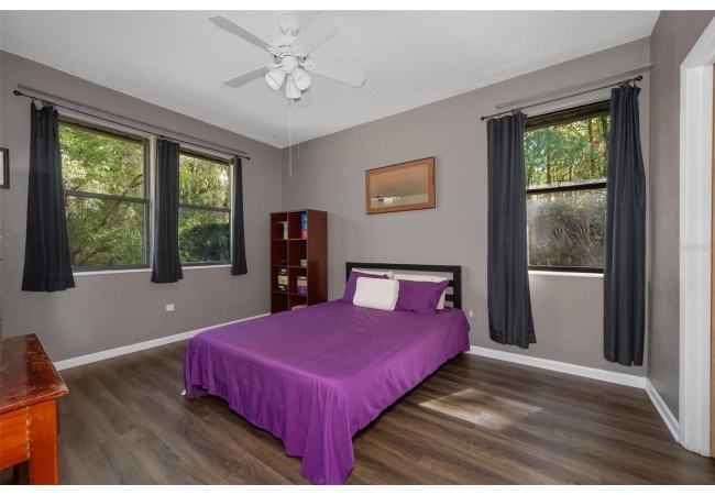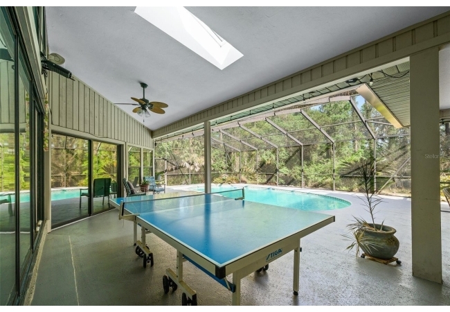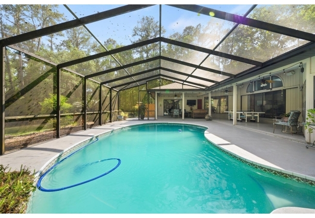Beautiful and Spacious POOL Home on TWO ACRES in the lovely Fort Clarke Forest neighborhood. This 4-Bedroom/3-Bath Home, with Office, which could be used as a 5th bedroom, is located along the most scenic portion of the SW 91st Street corridor with easy access to Newberry Road and SW 8th Avenue. The Property is very close to Shopping and the Hawkstone Country Club. It has a NEW ROOF, Fully-Updated Kitchen and Owner's Bathroom, and other bathroom updates. The bedrooms are on either sides of the living areas. The Living Room, Open Family Room/Kitchen, Owner's Suite and one other Bedroom (on the opposite side of house), all open up to the Screened-In Pool "Deck" that has covered living areas. The Living Room and Family Room have vaulted ceilings; there is a Wood-Burning Fireplace in the Family Room and a new Skylight in the Kitchen. An inside Laundry Room with sink and cabinets is connected to a hallway with oversized storage closets and the Office. In lieu of a garage, there is a large multi-purpose room that can be used as a workshop or for inside storage and separate tool storage area. There is also an outdoor Shed. The lot is beautifully landscaped and the setting is very private. One of two Water Heaters was very recently replaced. Schedule your tour today!