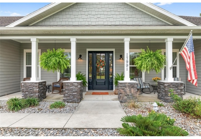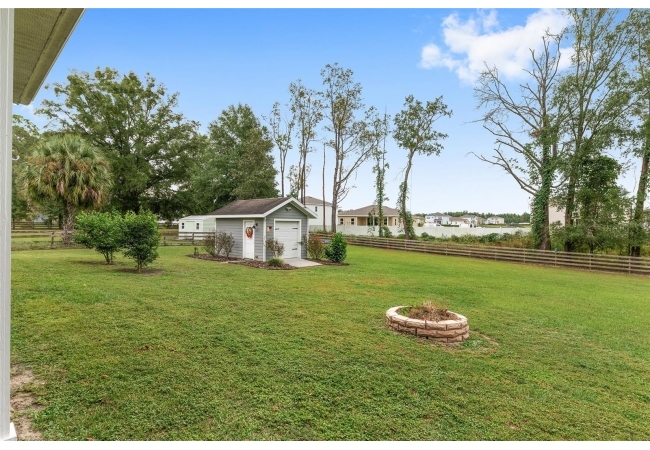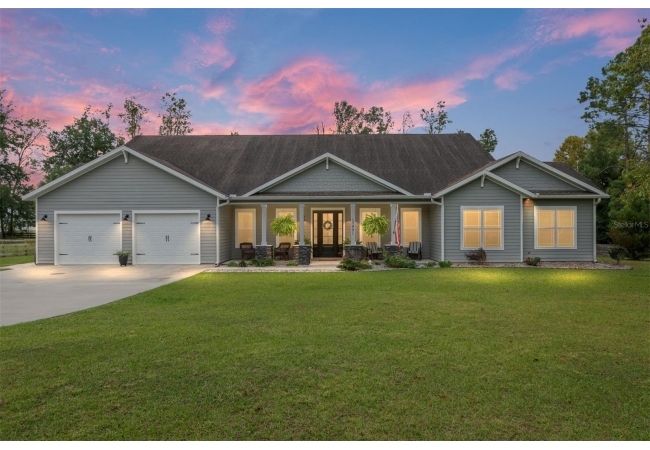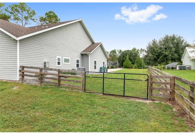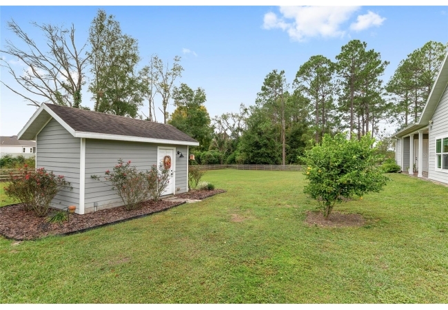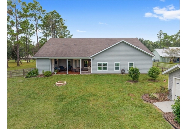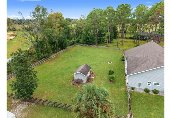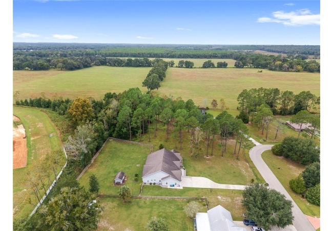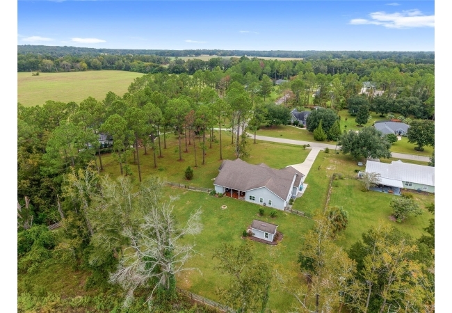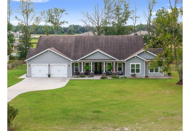 This stunning 4-bedroom, 3.5-bath custom-built home offers over 3,117 sq. ft. of indoor living space on 1.06-acre lot in the Meadow Glen community of Alachua. Designed with a split floor plan, soaring 11’ ceilings and elegant finishes throughout, this home combines comfort and sophistication. When you step inside there is a large foyer with a dedicated office to the left and half bath on the right. The open-concept great room features a vaulted ceiling, shiplap accent wall and pillared arches that flow into the dining and kitchen areas. The gourmet kitchen has professional-grade stainless steel appliances, to include two convection ovens, gas range, smart refrigerator, under cabinet lightening, granite countertops and 11-foot island that comfortably seats eight. The owner’s suite has views of the backyard. There is a spa-inspired bath featuring a large walk-in shower, jetted tub and an oversized 10 x10 walk-in closet. On the opposite side of the home are three additional bedrooms, each with generous closets, including a guest suite with its own bath and private access to the covered patio. Enjoy year-round outdoor living with a fully equipped summer kitchen featuring a built-in Kitchenaid grill and 36” Wolf gas range. The expansive fenced yard offers space for a pool, garden or play area. Additional highlights include a large laundry room with built-ins and folding station, walk-in pantry, mudroom, site-built storage shed and a 28 x 28 oversized garage with roughed-in plumbing. Low utility bills with Clay Electric. Lemon, Lime and Apple trees in the backyard. Recent improvements include new carpet in the bedrooms and fresh interior paint (2025), This home is move-in ready. Two Rinnai tankless water heaters, Carrier AC system and Delta fixtures. Enjoy country living just 20 minutes to Gainesville and UF. Publix, shopping and dining nearby, easy access to I-75.
