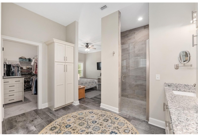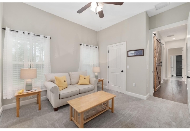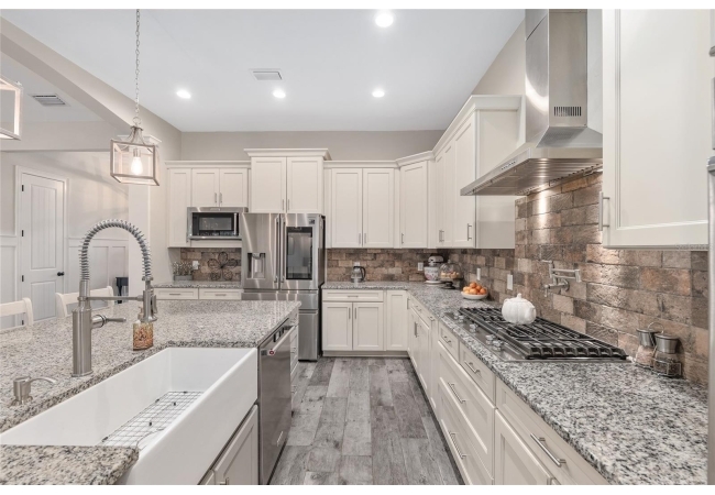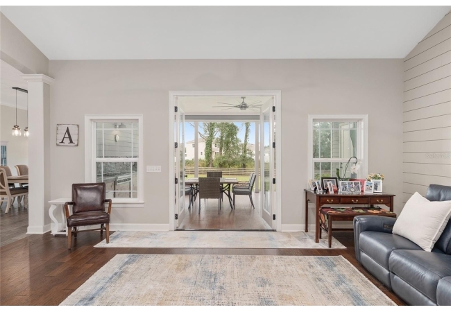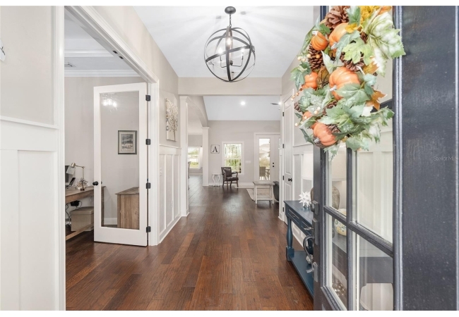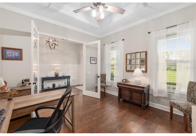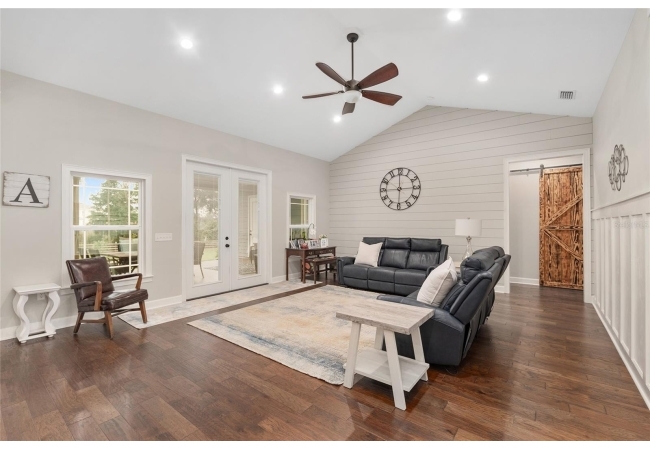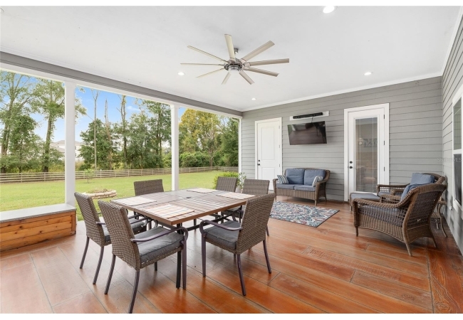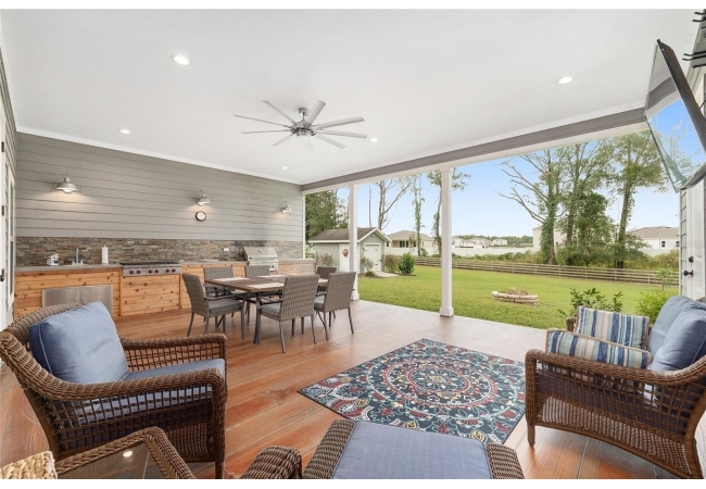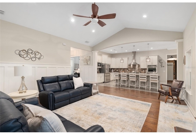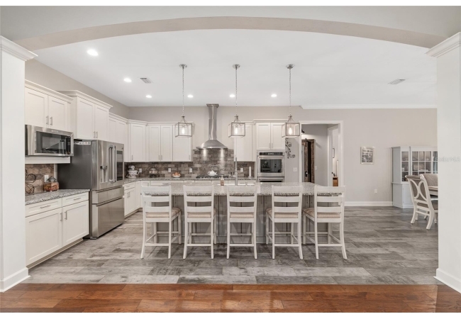 This stunning 4-bedroom, 3.5-bath custom-built home offers over 3,117 sq. ft. of indoor living space on 1.06-acre lot in the Meadow Glen community of Alachua. Designed with a split floor plan, soaring 11’ ceilings and elegant finishes throughout, this home combines comfort and sophistication. When you step inside there is a large foyer with a dedicated office to the left and half bath on the right. The open-concept great room features a vaulted ceiling, shiplap accent wall and pillared arches that flow into the dining and kitchen areas. The gourmet kitchen has professional-grade stainless steel appliances, to include two convection ovens, gas range, smart refrigerator, under cabinet lightening, granite countertops and 11-foot island that comfortably seats eight. The owner’s suite has views of the backyard. There is a spa-inspired bath featuring a large walk-in shower, jetted tub and an oversized 10 x10 walk-in closet. On the opposite side of the home are three additional bedrooms, each with generous closets, including a guest suite with its own bath and private access to the covered patio. Enjoy year-round outdoor living with a fully equipped summer kitchen featuring a built-in Kitchenaid grill and 36” Wolf gas range. The expansive fenced yard offers space for a pool, garden or play area. Additional highlights include a large laundry room with built-ins and folding station, walk-in pantry, mudroom, site-built storage shed and a 28 x 28 oversized garage with roughed-in plumbing. Low utility bills with Clay Electric. Lemon, Lime and Apple trees in the backyard. Recent improvements include new carpet in the bedrooms and fresh interior paint (2025), This home is move-in ready. Two Rinnai tankless water heaters, Carrier AC system and Delta fixtures. Enjoy country living just 20 minutes to Gainesville and UF. Publix, shopping and dining nearby, easy access to I-75.
